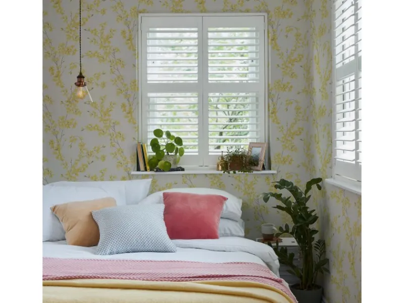 Der Forsythia-Druck von Laura Ashley in der warmen, leuchtenden Sonnenscheinfarbe ist ein klassisches Blumendesign. Kleine Blüten blühen entlang schlanker Zweige in diesem modernen, aber hübschen Druck.
