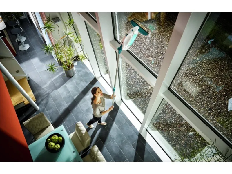 Der handliche Fenstersauger lässt sich mit allen Leifheit Click-System-Stielen verlängern und ist damit auch für schwer erreichbare Flächen ideal. Eine schmale Absaugdüse (17 cm) für Sprossenfenster ist separat erhältlich. Der Fenstersauger ist mit einem langlebigem Lithium-Ionen-Akku ausgestattet. Er ist leicht zu reinigen dank extra großer Tanköffnung. Ein Leifheit Qualitätsprodukt „made in Europe“.