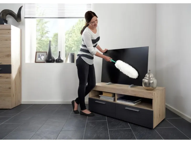 Mit dem Leifheit Staubwedel Duster XL können Sie Ihr Zuhause in kürzester Zeit staubfrei machen. Der Staubwedel befreit sowohl Zimmerpflanzen, Bücherregale, Jalousien als auch hochempfindliche Oberflächen wie Computer- und Fernsehbildschirme vom Staub. Mit seiner extra langen Reinigungsfläche von 38 cm eignet er sich ideal zum Reinigen von großen und glatten Oberflächen. Die antistatischen, superdichten Mikrofasern binden den Staub und verhindern so, dass Staubpartikel nur aufgewirbelt werden und sich an anderer Stelle wieder niederlassen. Der Griff ermöglicht die Nutzung eines Leifheit Click-System-Stiels mit Teleskopfunktion. Zudem ist er mit einer Aufhängemöglichkeit zum praktischen Verstauen versehen.
