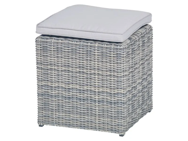 Gartenlounge aus Sesseln, Hockern, Sofa und Tisch zum geselligen Beisammensein