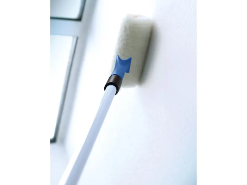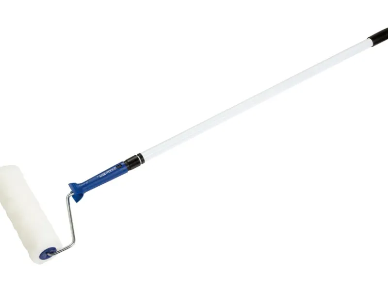 Als Material kommt Vestan zum Einsatz. Dabei handelt es sich um ein Kunstfell. Es überzeugt durch seine hohe Saugfähigkeit und eine gleichmäßige Farbabgabe. Nach dem Gebrauch kann die Rolle mit lauwarmem Wasser oder Verdünner gereinigt werden. Die Walzenlänge beträgt 25 cm. Der Kunstfellroller wird mit einem Bügel geliefert, der über einen ergonomischen Griff verfügt. Dieser kann mit der zugehörigen Teleskopstange verbunden werden, die sich von 100 cm bis 170 cm ausziehen lässt. Dadurch können Sie Decken oder Wände ohne den Einsatz von Leiter oder Gerüst bequem vom Boden aus streichen.