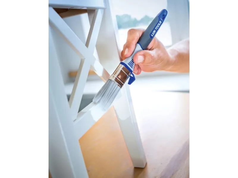 Dieser LUX-TOOLS Flachpinsel der Breite von 40 mm bietet Ihnen ein Malerzubehör für Lackierarbeiten auf großen Flächen. So können sie ihn beispielsweise für Türen und Böden verwenden. Der Pinsel ist mit einer rostfreien Zwinge aus Stahl versehen, in der die Kunstborsten fest verankert sind. Sie sind formstabil und lassen sich leicht reinigen. Der praktische Eimerhaken an der Seite verhindert, dass der Pinsel in die Farbe rutscht. Der ergonomische 3-Komponenten-Griff liegt angenehm in der Hand und ermöglicht Ihnen damit ein bequemes Arbeiten. Am Ende des Stiels befindet sich ein Loch, sodass der Flachpinsel nach dem Verwenden aufgehängt werden kann.