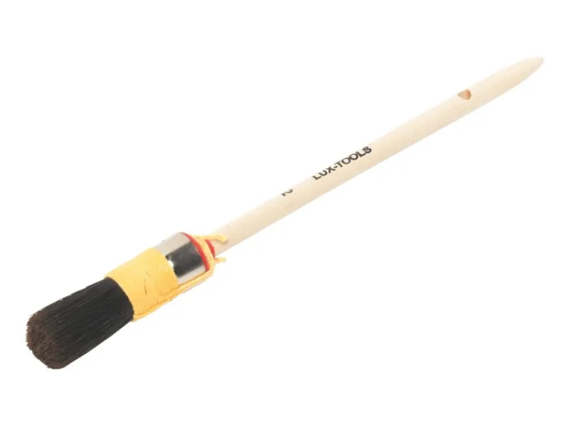 Der LUX-TOOLS Ringpinsel hat reine schwarze Chinaborsten und einen naturfarbenen Holzstiel. Er hat einen Borsten-Ø von 20 mm, ist für lösungsmittelhaltige Lacke geeignet und sorgt für ein sehr gutes Streichergebnis.