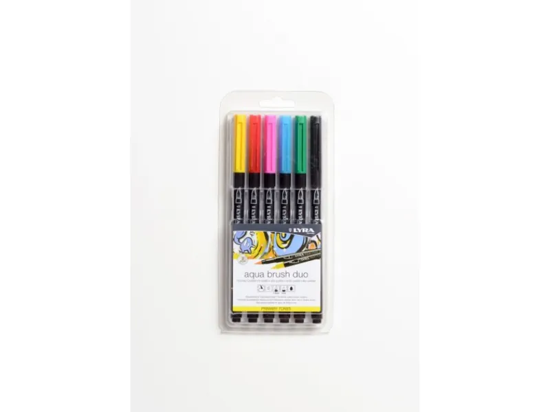 LYRA Aqua Brush Duo ist ein Fasermaler mit zwei Spitzen von ausgezeichneter Qualität. Die feine Spitze kann für Präzisionszeichnungen, Formzeichnungen oder die Ausführungen von Konturen und Details verwendet werden. Die zweite Spitze ist breit und flexibel wie ein Pinsel. Sie ermöglicht einen flachen, sehr weichen und gleichzeitig sauberen und sicheren Pinselstrich. Die Nylonfasern verleihen der breiten Spitze optimale Elastizität, um auch große Flächen zu bemalen, während sie der dünnen Spitze Stabilität für feinere Konturen und präzises Schreiben verleihen. Aqua Brush Duo wird von Designern, Cartoonisten, Grafikern und vielen anderen Künstler geschätzt und ist bestens für Kalligraphie und Handlettering geeignet. Die Farben auf Wasserbasis sind wasserlöslich, geruchlos.