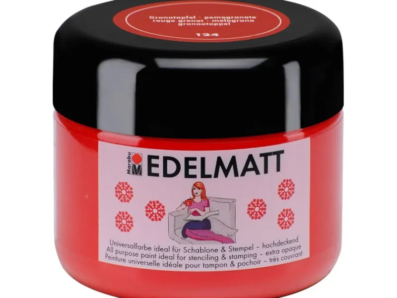 Die deckende Acrylfarbe auf Wasserbasis wurde speziell zum Schablonieren und Stempeln entwickelt. Zudem ist sie auch für flächige Akzente an der Wand geeignet. Die wunderbare cremige Konsistenz von Marabu Edelmatt sorgt für eine einfache Verarbeitung. Die nicht tropfende, wasserfeste und lichtechte Farbe eignet sich für vielfältige Untergründe wie Holz, MDF, Metall, Papier und Keilrahmen.