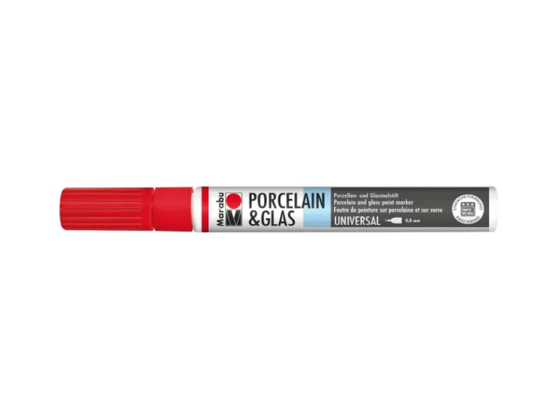 Die Marabu Porcelain & Glass Painter werden in drei unterschiedlichen Spitzenformen/-größen angeboten. Dieser Stift besitzt zum filigranen Schreiben die Universalspitze mit 0,8 mm Strichstärke.