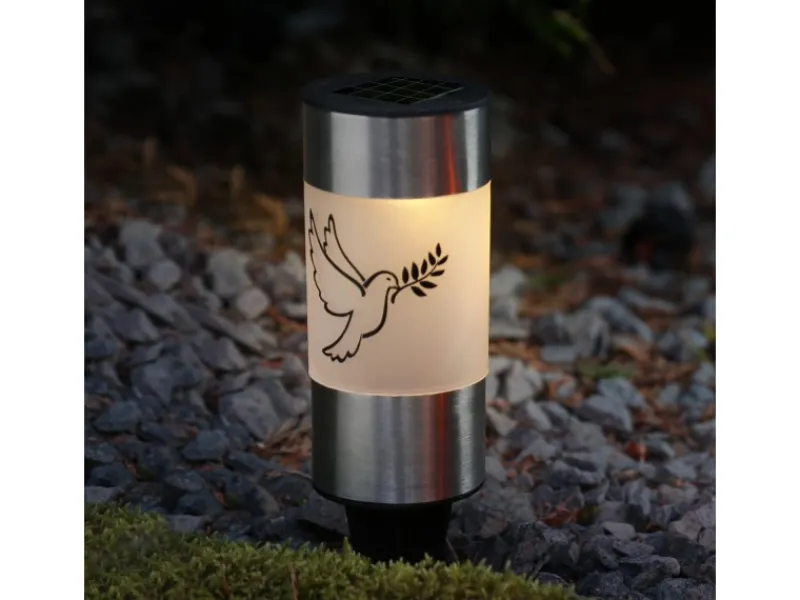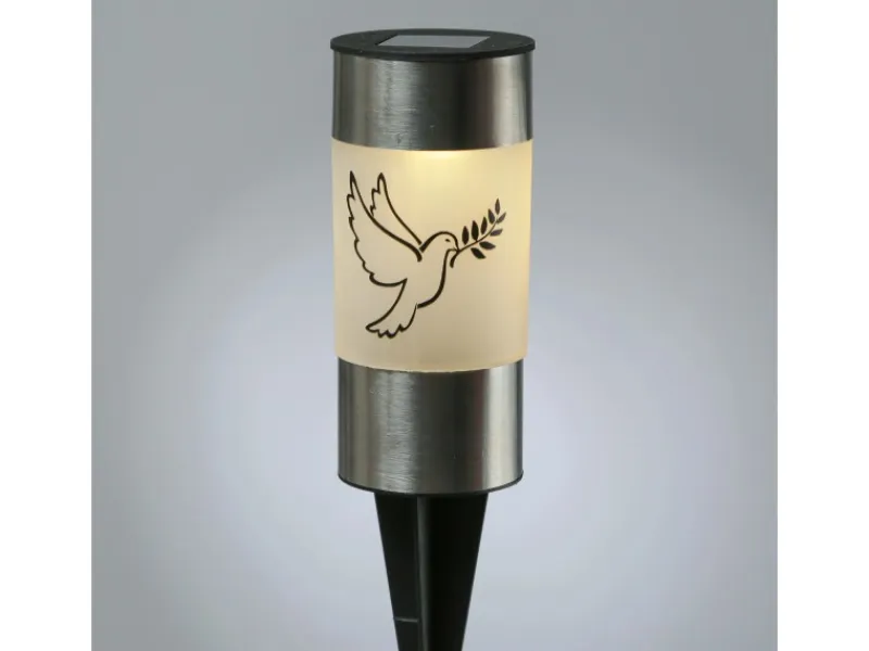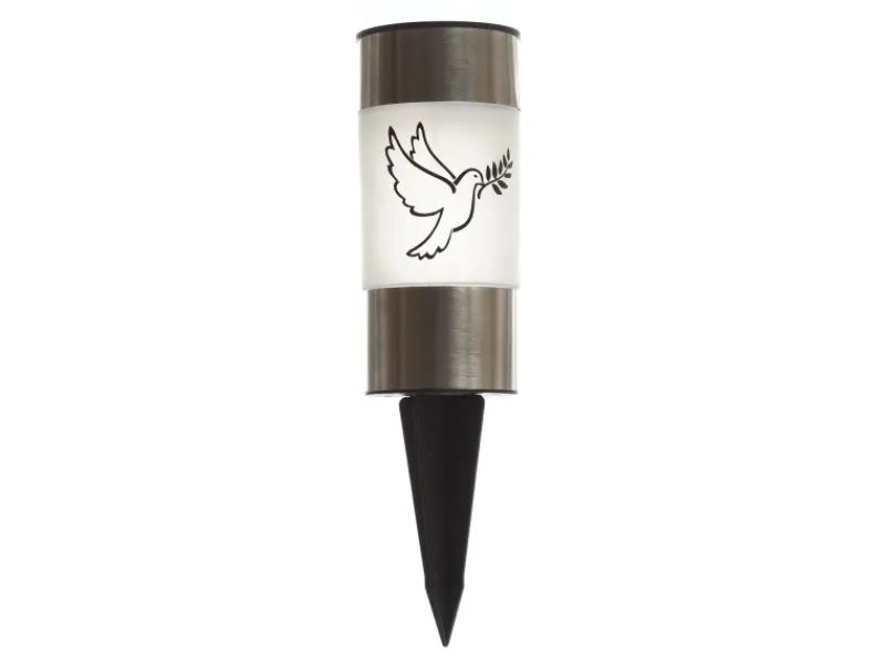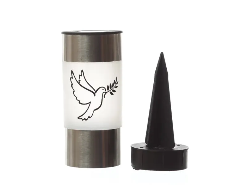 Solarbetriebene LED Grabkerzen mit Taube und Erdspieß (der Erdspieß ist bei Anlieferung in das Licht gesteckt)