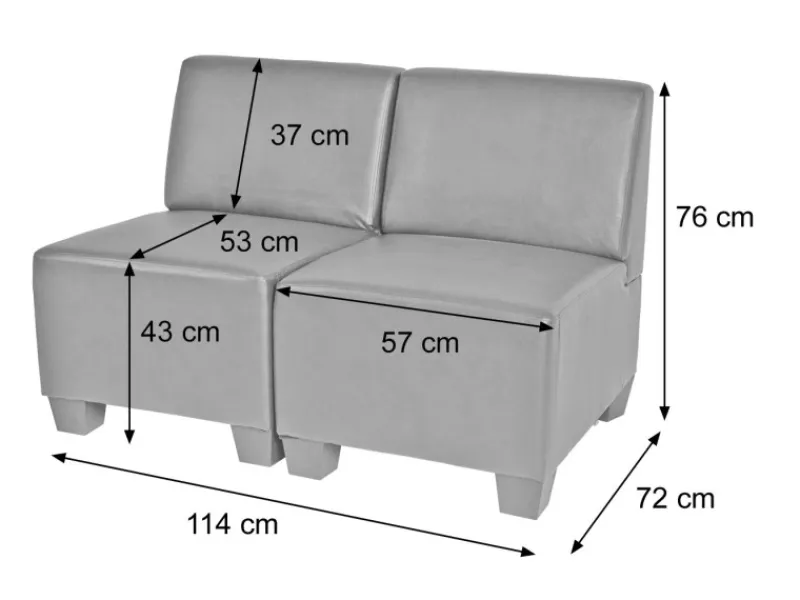 2-Sitzer (bestehend aus zwei Mittelteilen ohne Armlehnen)