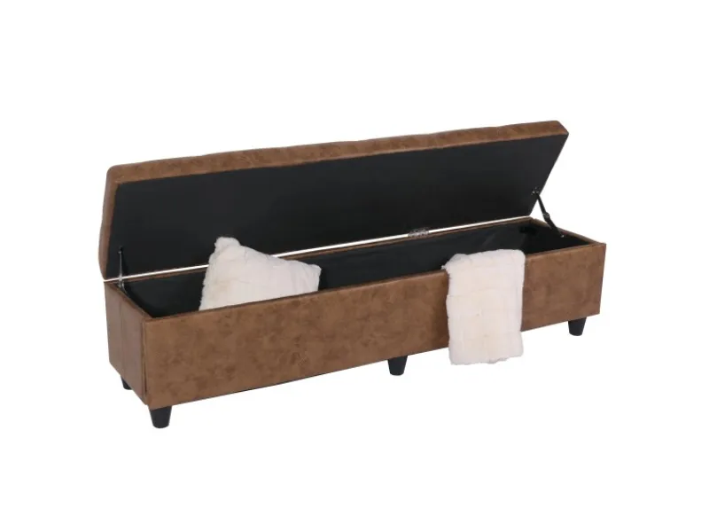 Diese Bank ist nicht nur eine tolle Sitzgelegenheit, sondern bietet ein großzügiges Staufach unter der Sitzfläche, welches Sie durch einfaches Hochklappen des Deckels erreichen. Hier können Sie nach Belieben Ihre alltäglichen Gebrauchsgegenstände ganz einfach unterbringen. Die breite und dick gepolsterte Sitzfläche ermöglicht ein angenehmes Sitzen auch über einen längeren Zeitraum hinaus. Praktisch und bequem, diese Sitzbank wird all Ihren Anforderungen spielend leicht gerecht werden.
