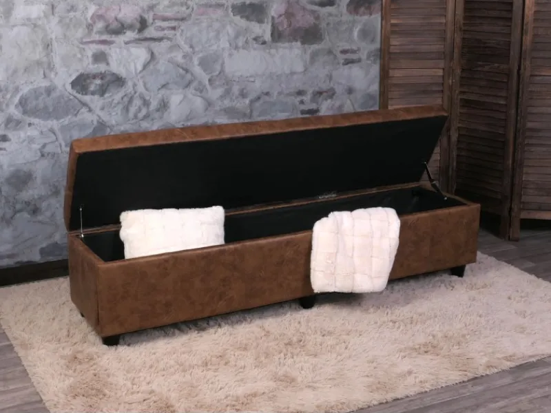– Praktikabilität und schönes Design in einem Produkt vereint: Über den aufklappbaren Deckel erreichen Sie ein großzügiges Staufach, indem sich Kissen, Decken, Regenschirme oder ähnliche Gebrauchsgegenstände griffbereit aufbewahren lassen.