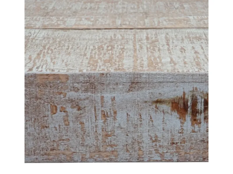 Klares Design in einer Mischung aus Antik und einem Hauch von Vintage. Das naturbelassene Holz wurde zum Schutz mit ein wenig mattem Klarlack überzogen, der aber weiter nicht auffällt. Kleinere Unregelmäßigkeiten der Oberfläche sind auf das Naturprodukt Holz zurückzuführen, so bekommt der Couchtisch einen rustikalen Charme verliehen. Er ist schlicht und raffiniert zugleich und somit ganz schnell unser neues Allround-Talent geworden. Dank der stabilen Metallfüße steht er sehr sicher und passt zudem durch den Materialmix aus Metall und Holz zu (fast) jeder Einrichtung. Trotzdem ist der Tisch durch sein Design ein kleiner Eye-Catcher und wird sich bestimmt super neben Ihrer Wohnlandschaft machen.