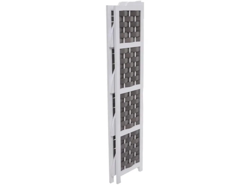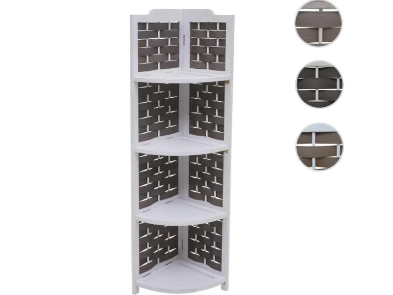 Dieses Regal bietet Stauraum für Ihre alltäglichen Gegenstände. Egal ob im Bad, Kinderzimmer, Flur oder Küche, es macht überall eine gute Figur. Durch das zeitlose und moderne Design fügt sich dieses Eckregal dekorativ in fast jedes Ambiente ein und setzt einen eleganten Akzent in Ihrem Zuhause. Die Materialkombination aus Holz und dem Geflecht rundet das Gesamtbild dieses Standregals bestens ab. Sollten Sie das Regal mal platzsparend verstauen möchten, können Sie es im Handumdrehen zusammenklappen.