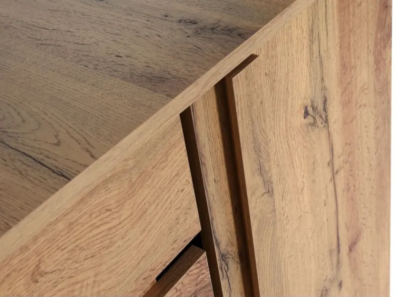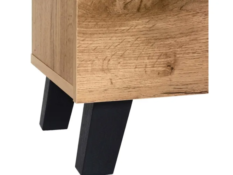 – Die Kommode besticht durch ihre Struktur und die einzigartige Türoberfläche im Paletten-Design, die Ihrem Raum einen modernen und eleganten Look verleiht.