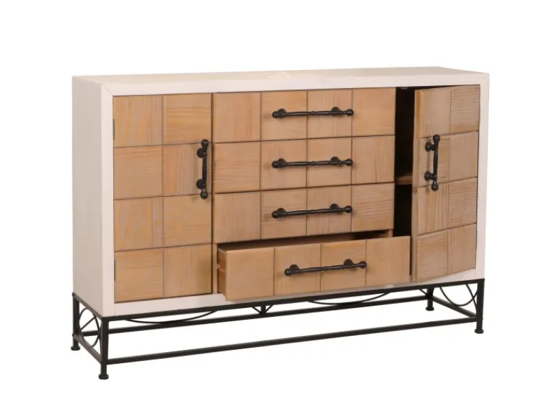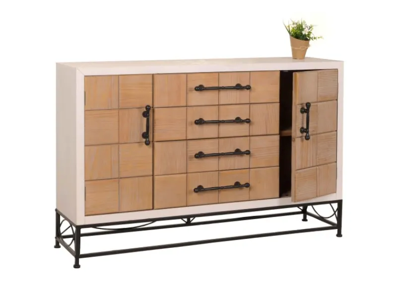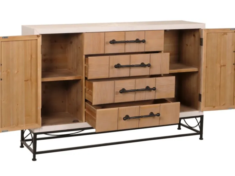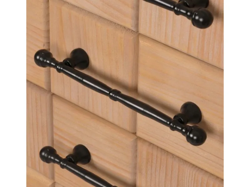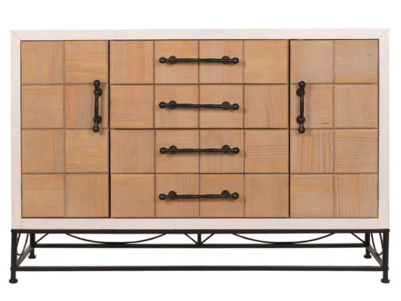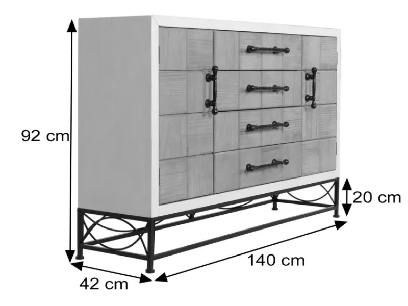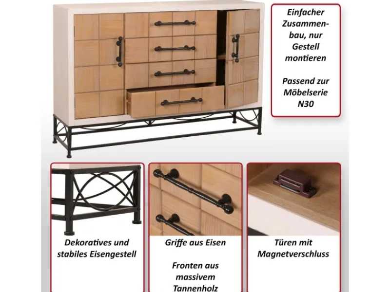 Ein weiteres Highlight ist das stabile und dekorative Eisengestell, das nicht nur für die nötige Stabilität sorgt, sondern mit seinen filigranen Linien auch einen modernen industriellen Touch ins Spiel bringt. Die Griffe aus Eisen unterstreichen diesen Look und garantieren eine zuverlässige und langlebige Nutzung. Die Montage der Kommode ist denkbar einfach. Das Gestell muss lediglich am unteren Teil des Möbelstücks montiert werden, was schnell und ohne großen Aufwand möglich ist. Mit ihrer vielseitigen und ansprechenden Erscheinung passt diese Kommode perfekt zu weiteren Stücken der Möbelserie N30, sodass Sie ein harmonisches Gesamtbild in Ihren Wohnräumen schaffen können.