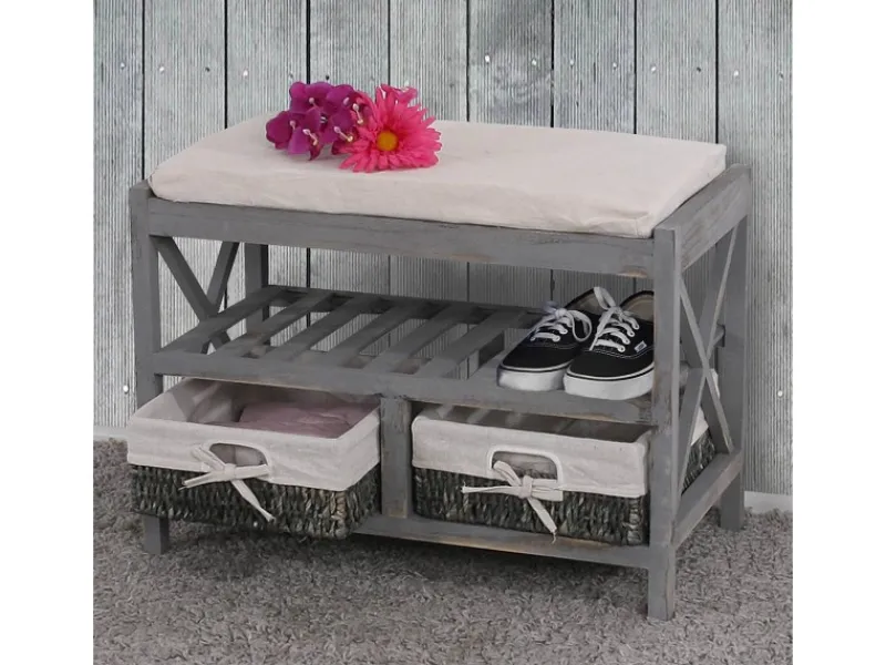 Dieses praktische und schicke Schuhregal ist ein echter Hingucker und wird jeden Raum aufwerten! Es findet nahezu in jedem Wohnbereich eine vielseitige und praktische Verwendung. 2 Schubladen und ein Ablagefach bieten Stauraum und schaffen Ordnung. Nebenbei kann man dieses auch als Sitzgelegenheit nutzen. Ein Schuhregal das den Herausforderungen des Alltags eben durch und durch gewachsen ist!