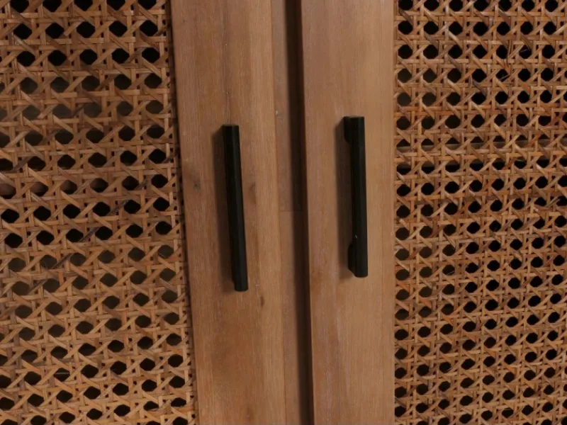 Die Kommode M47, eine stilvolle Bereicherung für Ihr Heim, zeichnet sich durch ihr modernes Design mit Rattan an den Türfronten aus und verleiht jedem Zimmer eine elegante Note. Gefertigt aus solidem Massivholz, verspricht dieses Möbelstück sowohl Haltbarkeit als auch Stabilität. Mit vier geräumigen Fächern und drei Türen bietet es viel Stauraum für Ihre Sachen und sorgt für eine geordnete Atmosphäre.