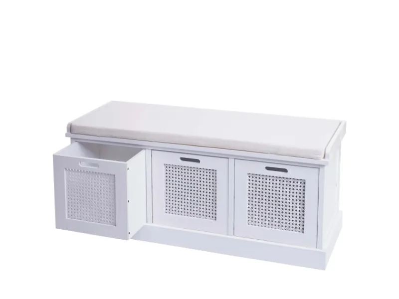 – Diese Sitz-Kommode überzeugt nicht nur durch ihr schlichtes Design. Dank den drei praktischen Aufbewahrungsboxen verfügt sie über reichlich Unterbringungsmöglichkeiten für Ihre alltäglichen Gebrauchsgegenstände wie Taschen, Regenschirme oder Ähnliches.