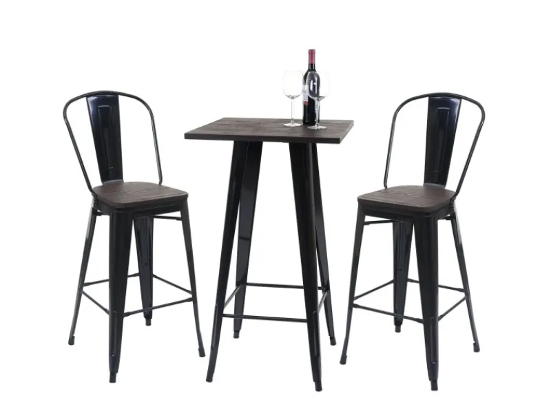 Die Neuauflage unserer Metall-Serie hebt sich durch die Tisch- und Sitzplatte aus Ulmenholz von der alten Serie ab. Die klare und schöne Maserung des dunklen Holzes passt hervorragend zu dem ansonsten pulverbeschichteten Metall. Das Industriedesign ist schick, ansprechend und lässt sich mit fast jeder Art von Einrichtung perfekt kombinieren. Trotzdem wird durch die klaren Linien dieses Stils ein optisches Highlight gesetzt.