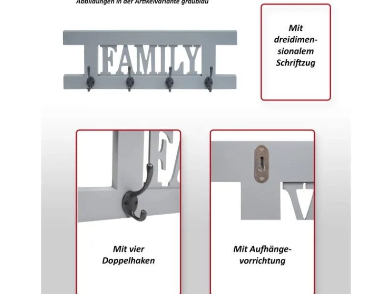 – Wandgarderobe mit 4 Doppelhaken