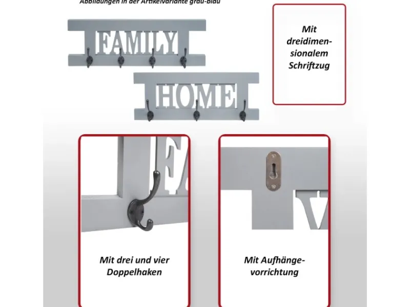 – 2x Wandgarderobe mit 3 und 4 Doppelhaken