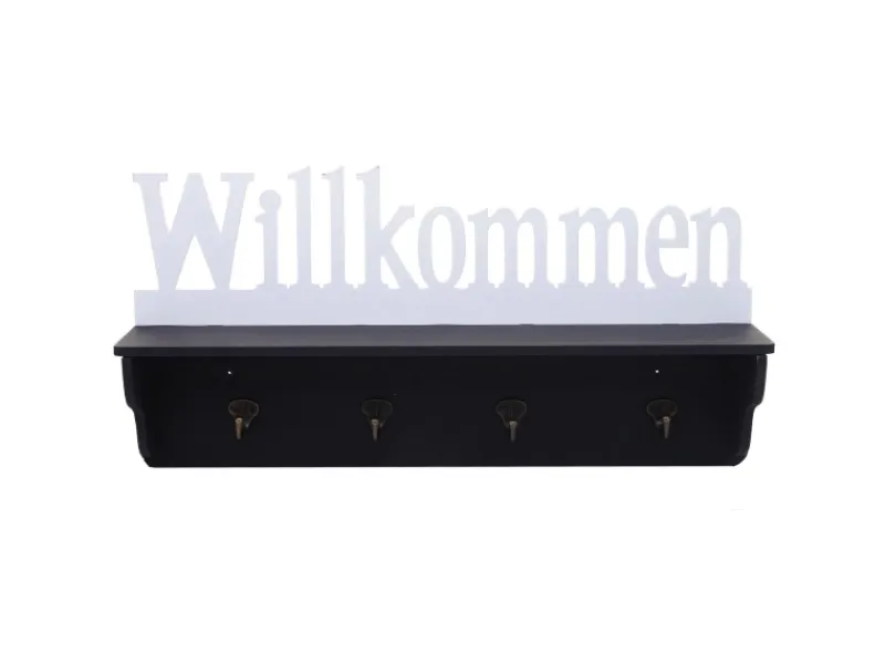 MCW Wandgarderobe D41 Willkommen 4 Haken Schwarz/weiß