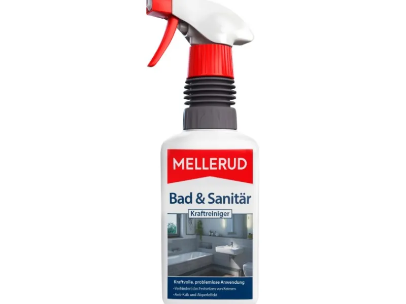 Der Reiniger beseitigt schnell und wirkungsvoll Kalk- und Wasserflecken, Grauschleier, Seifenreste und Rost. Dank eines neuartigen Abperleffekts sorgt der Mellerud Bad und Sanitär Kraftreiniger für strahlenden Glanz.