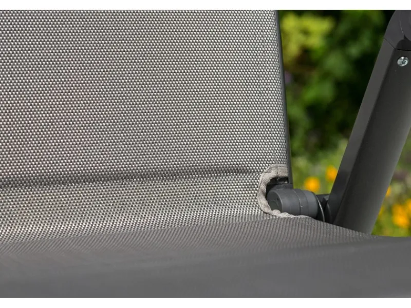 Der Gartensessel Trivero ist aus einem pulverbeschichteten Aluminiumgestell gefertigt und mit einer diamantbraunen Textilbespannung bespannt. Er verfügt über die Maße (H x B x T) von 112 cm x 59 cm x 69 cm. Der Bezug besteht aus 100 % Polyester mit Polyvinylchloridbeschichtung und ist mit 100 % Polyester gefüllt.