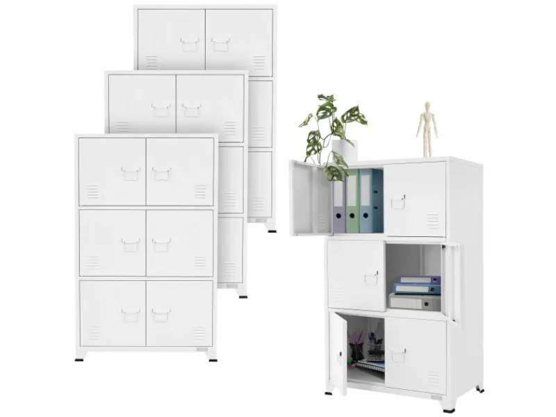 Der robuste Büroschrank aus hochwertigem Stahl vereint Funktionalität und Langlebigkeit, um Ihre Büroumgebung optimal zu organisieren. Mit sechs Türen und drei geräumigen Fächern bietet dieser Schrank ausreichend Stauraum für Ihre Unterlagen, Akten und persönlichen Gegenstände.