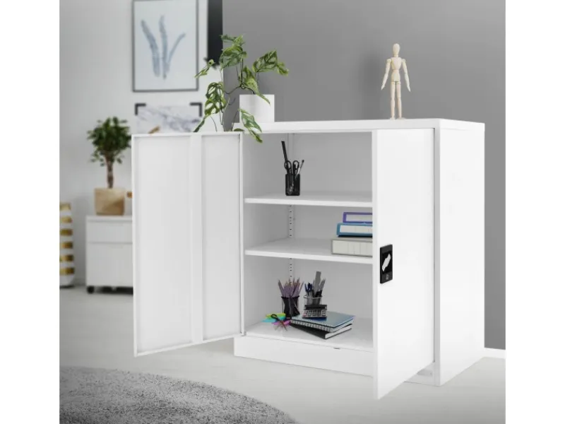 Mit einer perfekten Höhe von 90 cm bietet dieser Schrank eine ideale Aufbewahrungslösung für Büros, Homeoffices und Arbeitsräume. Die zwei abschließbaren Türen gewährleisten nicht nur Datenschutz, sondern auch den Schutz vertraulicher Unterlagen. Zwei Schlüssel sind im Lieferumfang enthalten, damit du stets einen Ersatz in Reserve hast.