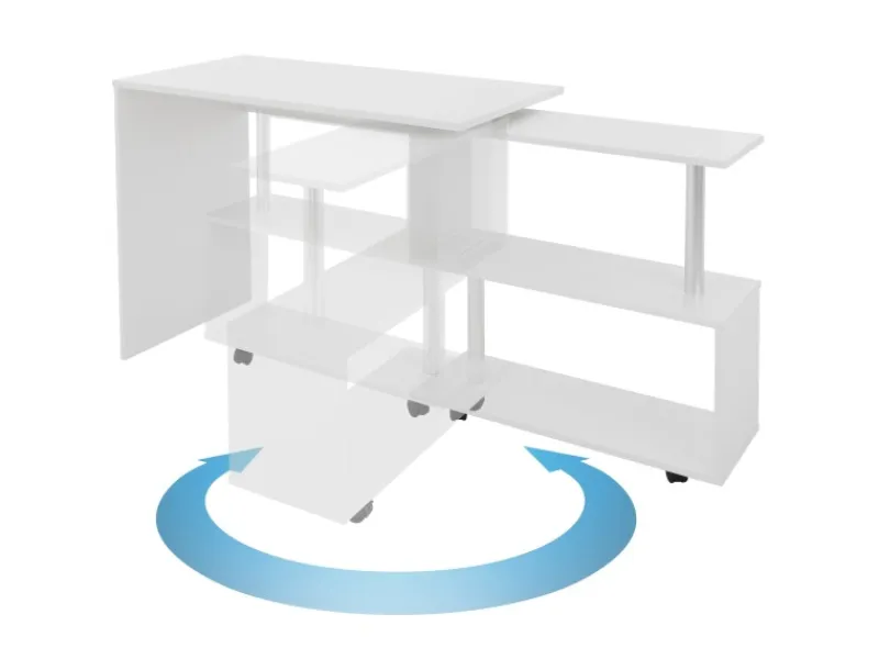 Der um 90 Grad drehbare, verstellbare Eckschreibtisch bietet mehr Platz für den Drucker, Stereoanlage, Bücher, Blumen und alles, was Sie zur Hand haben möchten.