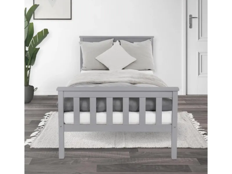 Bett Hellgrau mit Kopf- und Fußteil