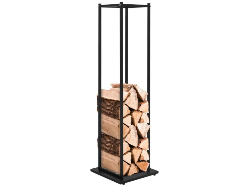 Du möchtest dein Feuerholz stilvoll in deinem Zuhause lagern? Mit diesem Feuerholzregal aus pulverbeschichtetem Stahl ist das kein Problem. Dieses Regal kann du für den Innen als auch Außenbereich nutzen und dein Holz ist vor Bodenfeuchtigkeit geschützt.