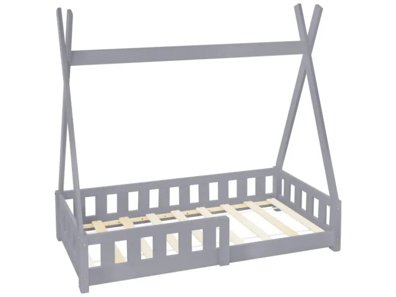 1x Kinderbett Tipi mit Rausfallschutz, inkl. Lattenrost aus Furnierholz