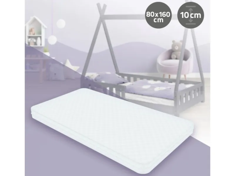 Kindermatratze 160 cm x 80 cm x 10 cm mit abnehmbarem Bezug