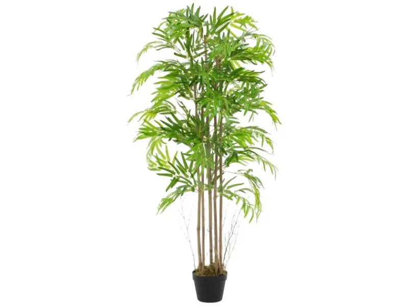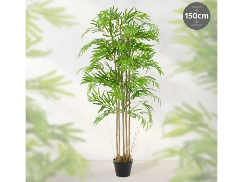 Erlebe die Schönheit des Bambus mit dieser 150 cm hohen künstlichen Pflanze, die echte Bambusstämme und realistische künstliche Blätter vereint.