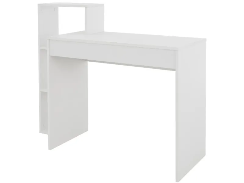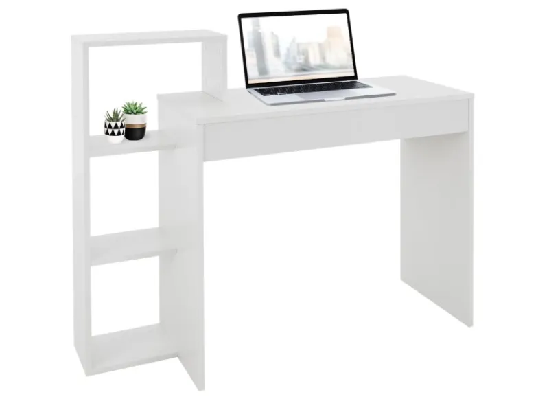 Praktischer Schreibtisch mit integriertem Regal: Dieser Schreibtisch hat nicht nur die Tischplatte als Ablagefläche, sondern ein angebautes Regal dient als zusätzlicher Stauraum. Die Schreibtisch-Regal Kombination ist nicht nur super praktisch, sondern auch ein echter Hingucker. Zusätzlich ist der Tisch äußerst robust bei einer Materialstärke von 15 mm. Hier bekommst du nahezu alles verstaut, was du am Schreibtisch brauchst.