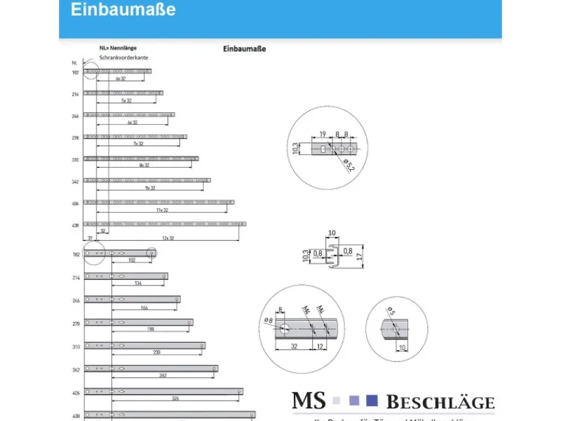 Kugelgelagerter Teilauszug für leichtgängige Schubladen