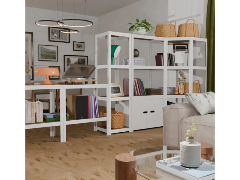 Das Regal ist kompatibel mit anderen Regalen und Lösungen aus der AR Shelving Rivet Style Series, wie dem Rivet Style Regal S oder dem Rivet Style Regal M. Darüber hinaus lässt sich das Regalsystem mit passenden Seiten- und Rückwänden oder Lochwänden flexibel erweitern und vervollständigen.