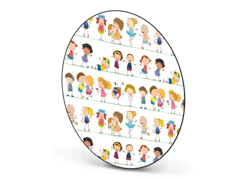Das Motiv Kinder wird mit einem Schutzlaminat überzogen und ist lösungsmittelfrei.