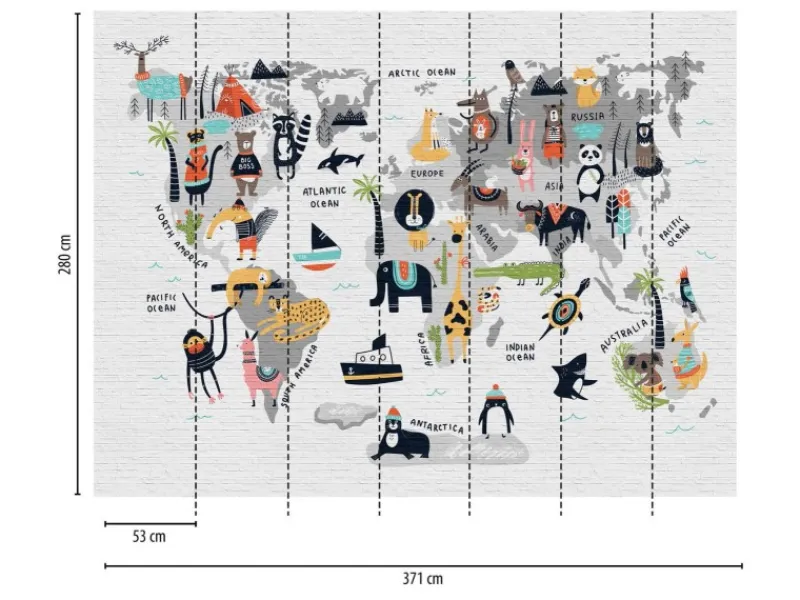 New Bricoflor Kindertapete Mit Weltkarte Mauer Tapete Mit Tieren Für Kinder Bunte Vliestapete In Steinoptik Mit Landkarte
