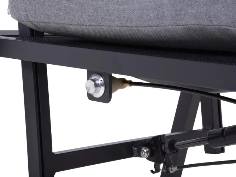 Das graue Polyesterkissen sorgt für zusätzlichen Komfort und Stil. Die verstellbare Rückenlehne ermöglicht es Ihnen, die Sitzposition nach Ihren Vorlieben anzupassen, sodass Sie sowohl entspannte als auch aufrechte Sitzpositionen genießen können.
