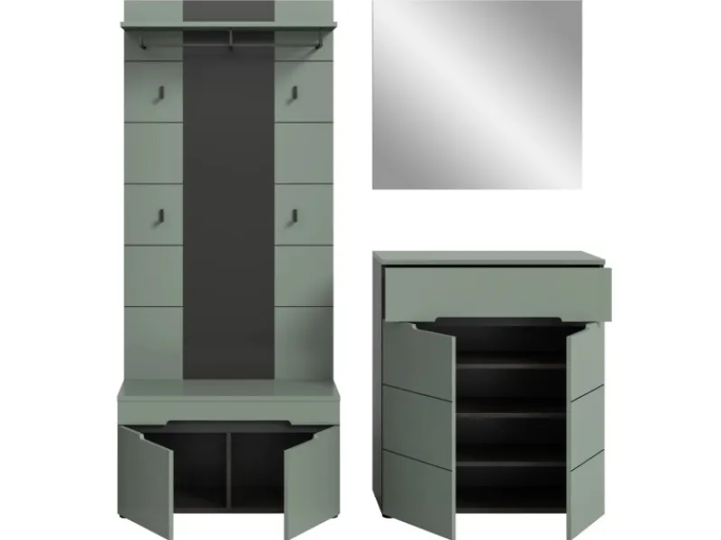 Garderobe „Cooper“ von Inn.Furn, 4-teilig, Salbei Grün / Basalt Grau