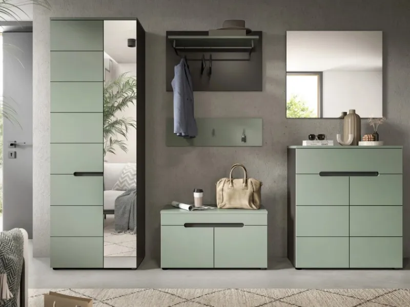 Garderobe „Cooper“ von Inn.Furn, 6-teilig, modernes Salbei Grün / Basalt Grau Design