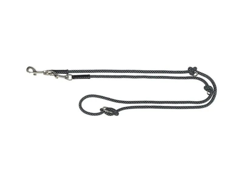 Dieser befindet sich am oberen Ende der Leine und kann wahlweise am Ring in der Nähe des Halsbandes, in der Mitte oder am Leinenende eingehakt werden. Durch die Verstellung der Ringe entlang der Leine ist es möglich, die Position flexibel anzupassen, um den individuellen Bedürfnissen gerecht zu werden.