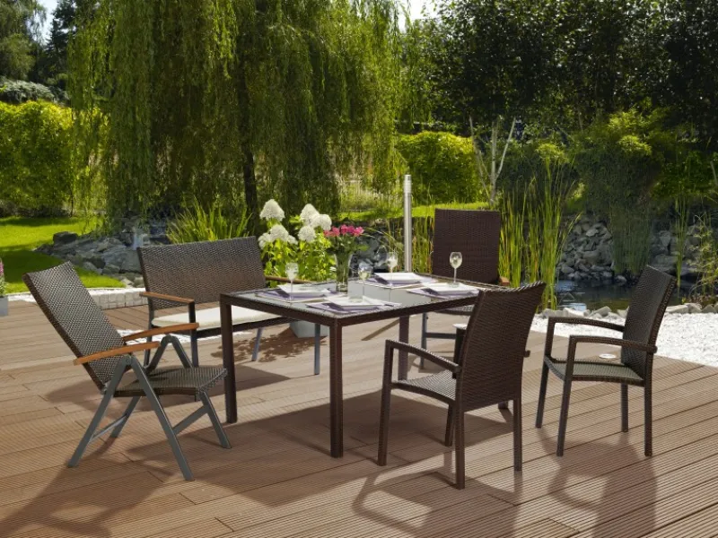 Leichtes Aluminiumgestell mit wetterfestem Polyrattan-Geflecht in Braun