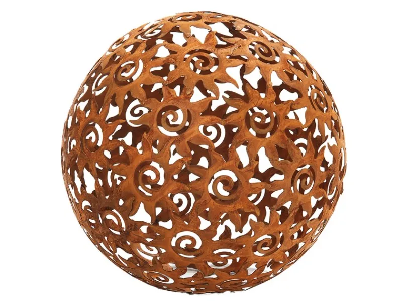 Gartenkugel Metall Rostoptik mit Sonnenmotiv, ideal für Beet, Rasen oder Hof