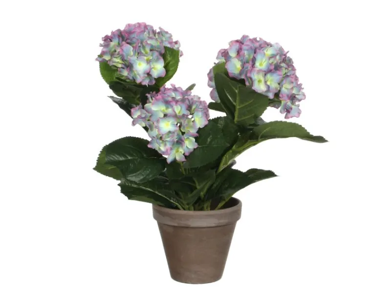 Auf diese Weise profitieren Sie von den Vorteilen einer Kunstpflanze, während Sie das Gefühl haben, eine echte Pflanze im Haus zu haben.Die Hortensie ist bereits modelliert und in einem Terrakotta-Topf mit basaltgrauen Pigmenten fest verankert.