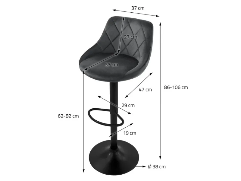 Verstellbare Sitzhöhe: Passe die Sitzhöhe deinem Bedarf an. Mit einer verstellbaren Höhe zwischen 62 und 82 cm bietet dieser Barhocker höchste Flexibilität.