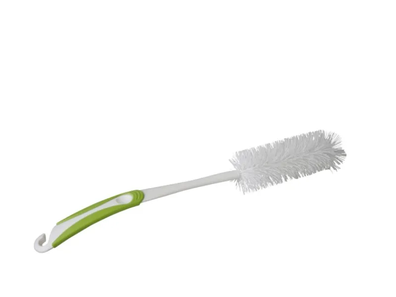 Die grün-weiße OBI Flaschenbürste mit gummiertem Griff ist für die gründliche Reinigung schwer zugänglicher Flaschen- und Glaskörper geeignet. Die Bürste ist aus Polypropylen und hat die Maße 400 mm x 50 mm x 60 mm.