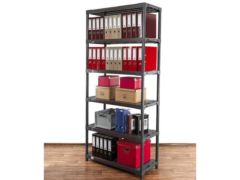 Robustes Kunststoffregal mit 6 Fachböden und mit einem Traglast von 160 kg pro Ebene